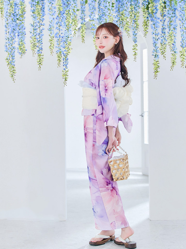 【即日発送】パステル水彩フラワーアンニュイ浴衣【浴衣3点セット 浴衣/帯/下駄】[YMT] [Y-9100-sb-dza-BL-F-25KE]