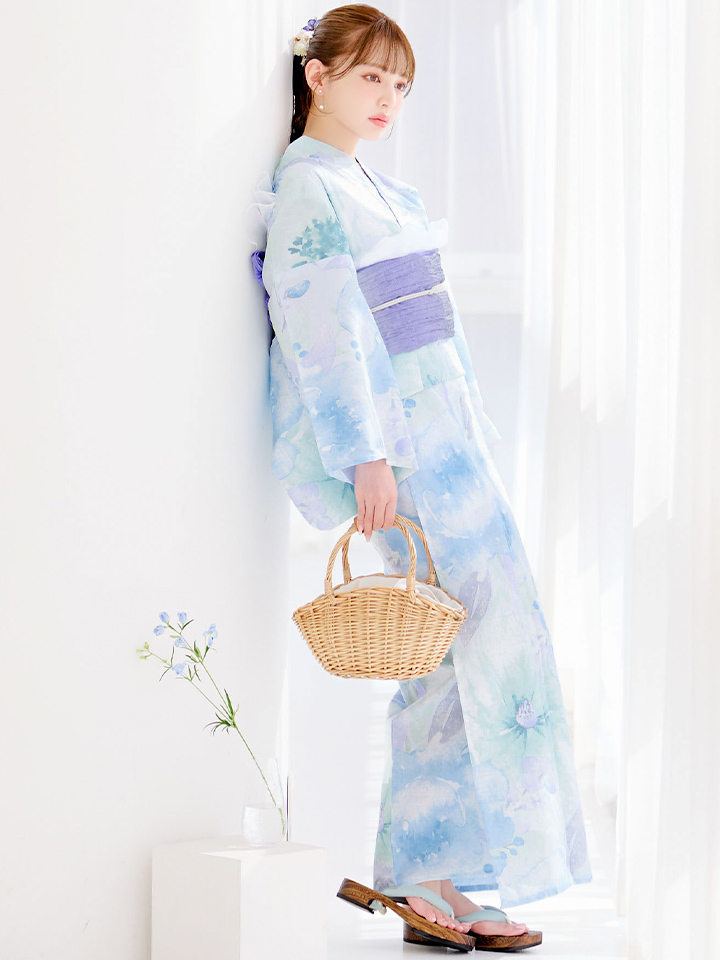 【即日発送】ブルーミントの水彩浴衣【浴衣3点セット 浴衣/帯/下駄】[YMT] [Y-9223-kj-BL-F-25PO]