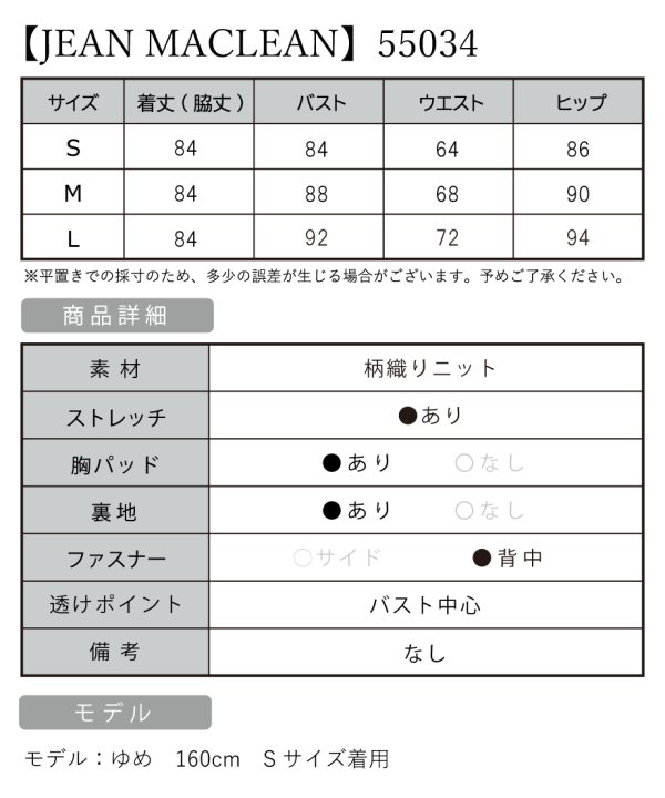B:90-94 / W:70-74 / H:90-94 [着丈](脇下)約84cm |