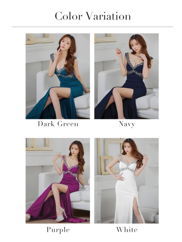 【Lip line/リップライン】ビジュー/ ノースリーブ/ ストレッチ/ スリット/ ロングドレス/ キャバドレス long[HC03] [A-0203-W-S2502]