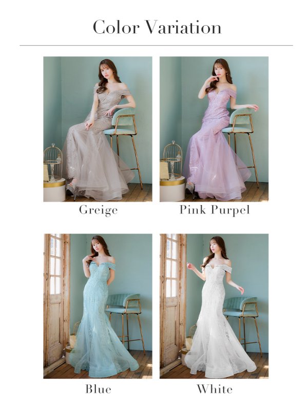 Lサイズあり【JEAN MACLEAN/ジャンマクレーン】オフショルダー/ 刺繍/ バックスピンドル/ チュール/ マーメイド/ ロングドレス/ キャバドレスlong[OF2A] [51784-JM-BL-S250227]