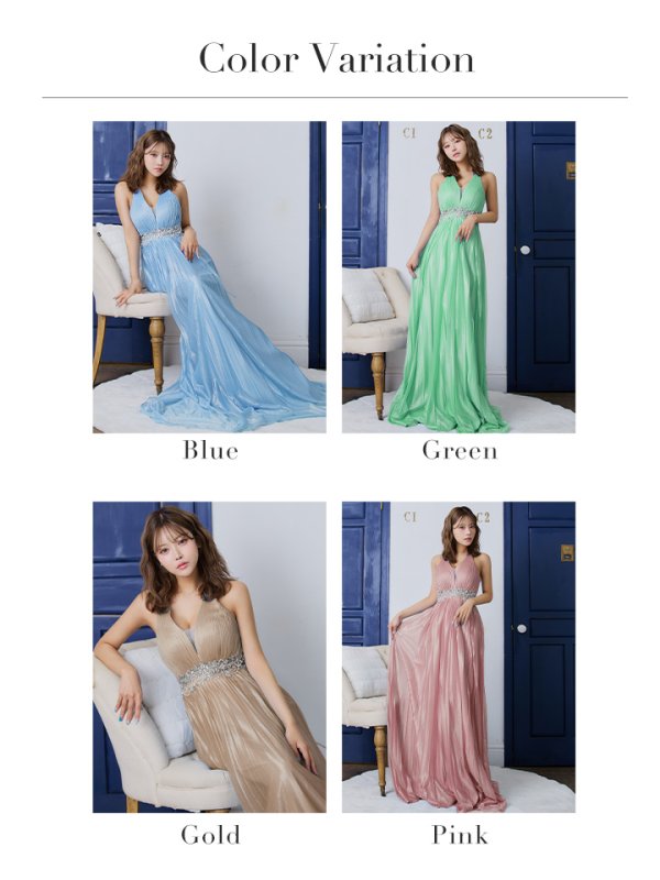 【Lip line/リップライン】ホルターネック/ ウエストビジュー/ プリーツ/ ラメ/ Aライン/ ロングドレス/ キャバドレス long[HC03] [A-0209-P-S2503]