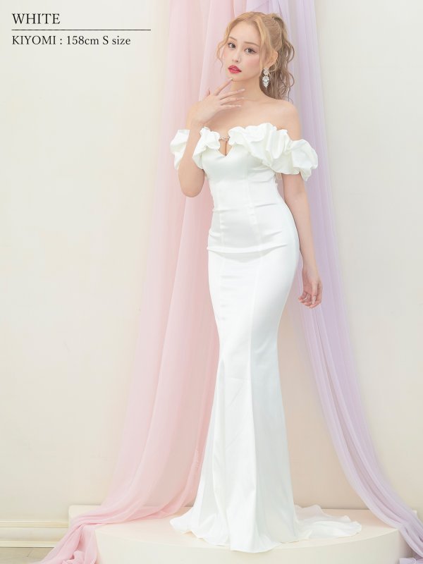 【ANGEL R/エンジェルアール】 フリルスリーブ/ オフショル/ バストチャーム/ ロングドレス/ キャバドレス[OF2] [AR25818-W-2503]