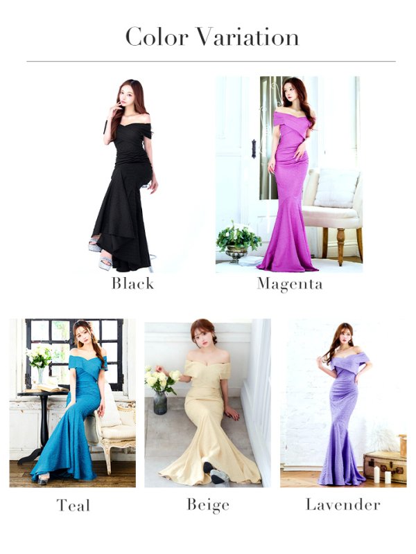 大胆なオフショルデザインが目を惹くマーメイドロングドレス♡