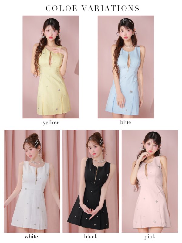 XSサイズあり【ROBE de FLEURS/ローブドフルール】バストジップ/ ノースリーブ/ ビジュー/ ミニドレス/ キャバドレス[OF08] [FM3789-Y-2503]