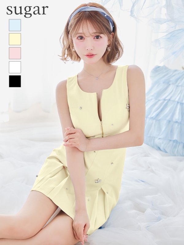 XSサイズあり【ROBE de FLEURS/ローブドフルール】バストジップ/ ノースリーブ/ ビジュー/ ミニドレス/ キャバドレス[OF08] [FM3789-Y-S250312]