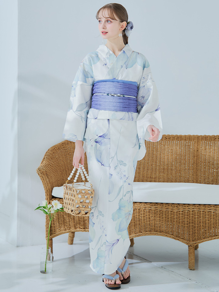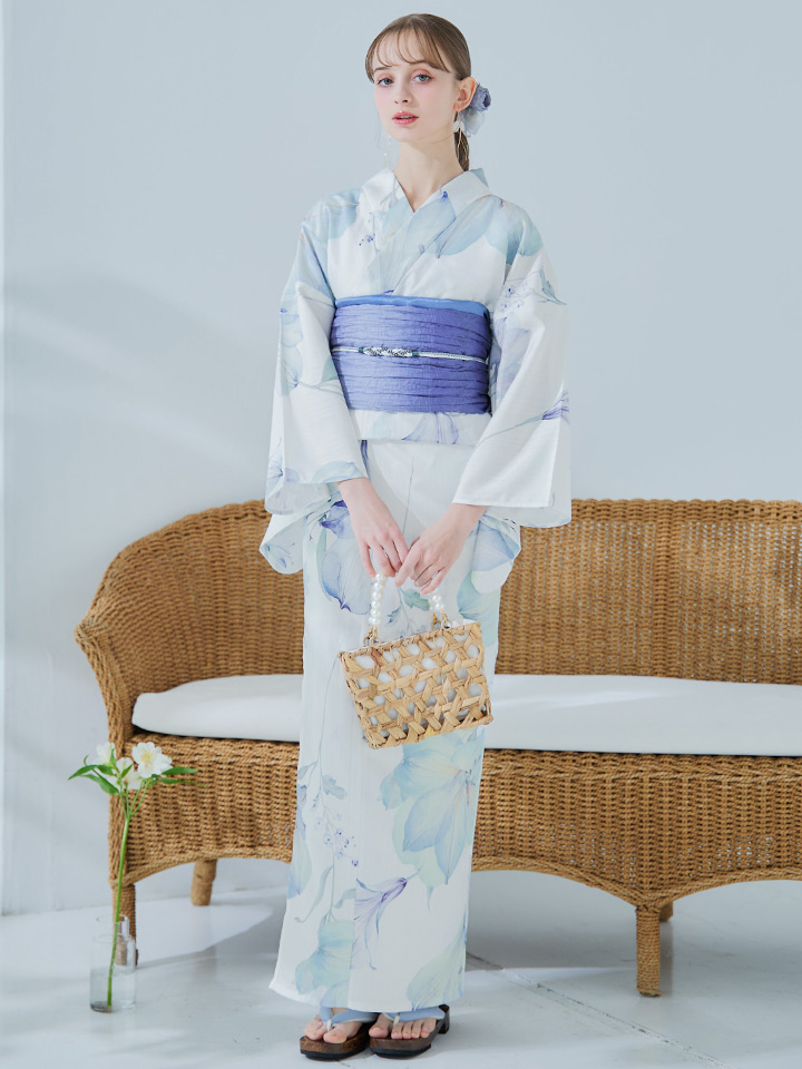 みずみずしくフレッシュなユリが咲く華やかでキュートな女性らしい夏浴衣。
