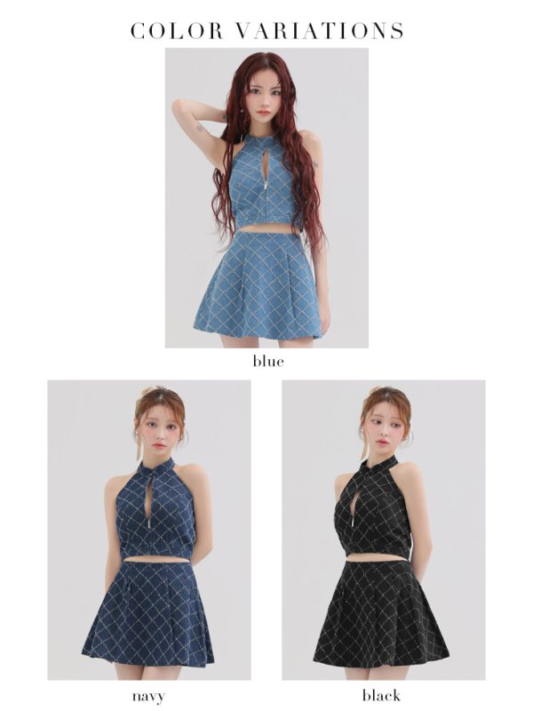 XSサイズあり【Glossy/グロッシー】デニム/ ホルター/ バストジップ/ フレア/ セットアップ/ ミニドレス/ キャバドレス[OF08] [GL3287-NV-2503]