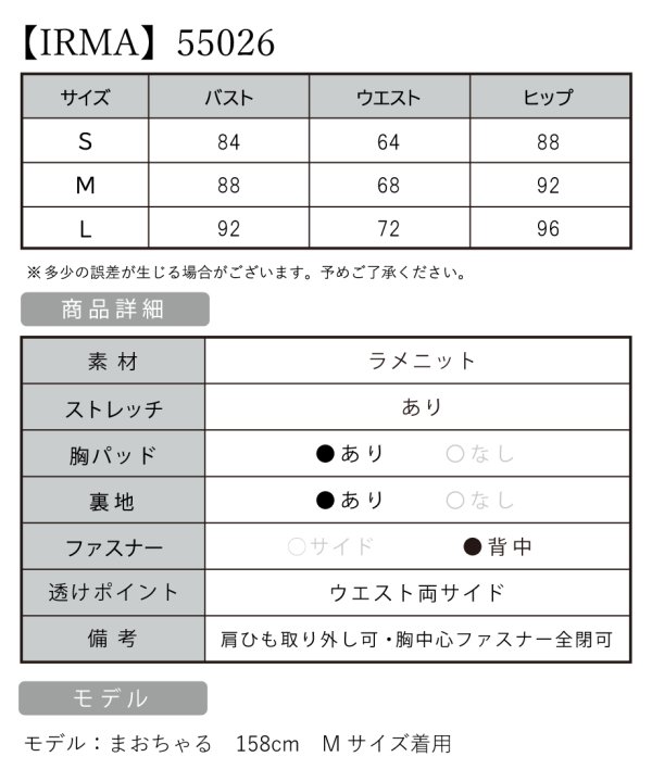 B:76-84 / W:56-64 / H:88 [着丈](脇下)約128cm |