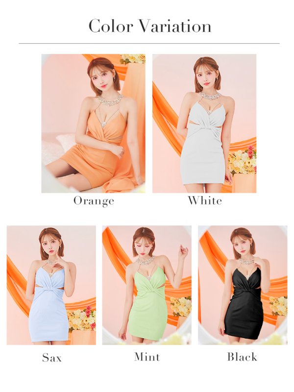XSサイズあり【ANGEL R/エンジェルアール】サテン/ ネックビジュー/ ウエストクロス/ タイト/ ミニドレス/ キャバドレス[OF2] [AR25221-B-S250401]