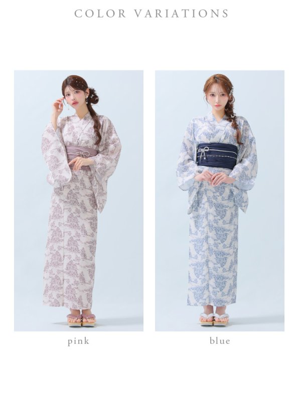 【即日発送】浴衣2点セット 浴衣・帯【ROBE de FLEURS/ローブドフルール】 Floral print yukata/フラワープリント浴衣[y/YMT] [FM3375-P-F-2504]