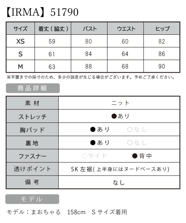 B:84 / W:64 / H:86 [着丈](脇下):約61cm |