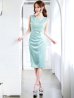 光沢感あるサテン生地と膝丈スカートが上品な印象のミディアムタイトドレス♡
