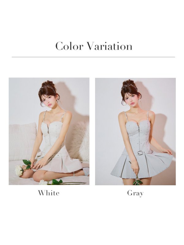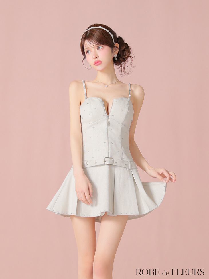 XSサイズあり【ROBE de FLEURS/ローブドフルール】ラメツイル/ ベルト/ プリーツ/ フレア/ ミニドレス/ キャバドレス[OF08] [FM4104-GY-S250416]