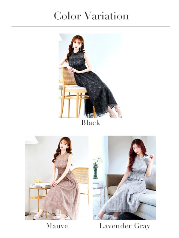【AMORA GRACE / アモーラグレース】 オケージョンドレス/ パーティードレス/ お呼ばれドレス/ パール付き/ ハイネック/ シアー/ チュール/ ノースリーブ/ ミモレ丈/ ワンピース/ キャバドレス[OF05] [G9839HL-B-S2504]