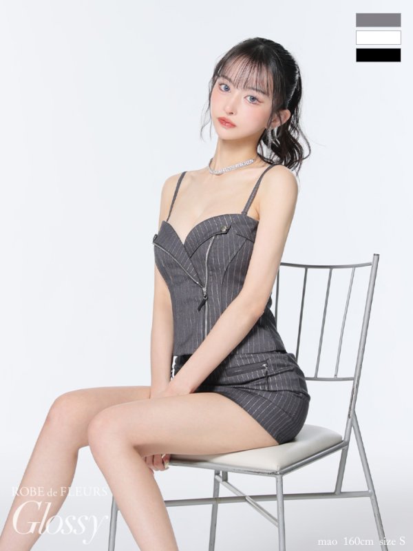 XSサイズあり【Glossy/グロッシー】2way/ ストライプ/ ジップ/ タイト/ ミニドレス/ キャバドレス[OF08] [GL3928-GY-2504]