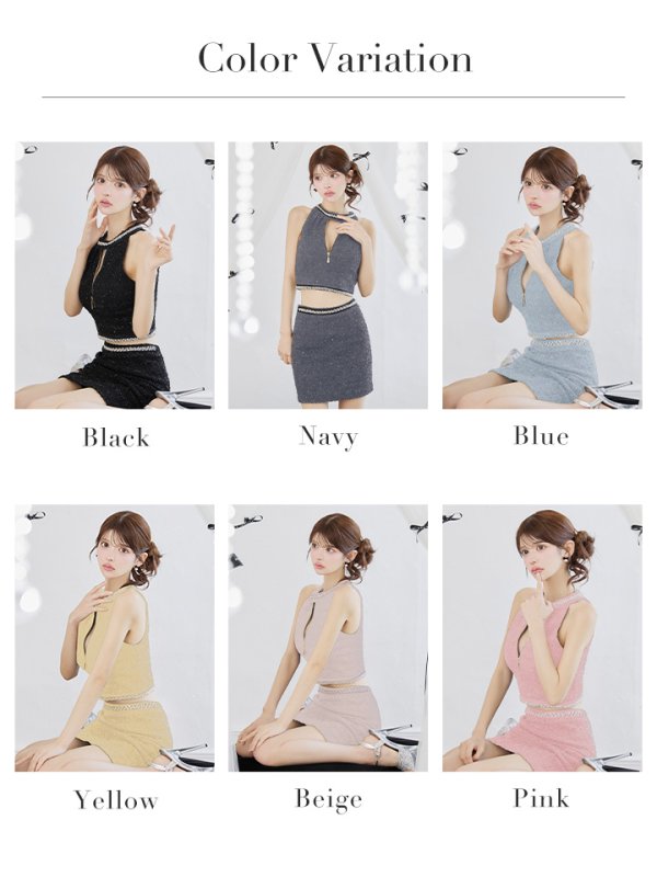 XSサイズあり【an /アン】アメスリ/ ラメ/ ビジュー/ バストジップ/ タイト/ セットアップ/ ツーピース/ ミニドレス/ キャバドレス[OF05] [AOC3888-NV-S250425]