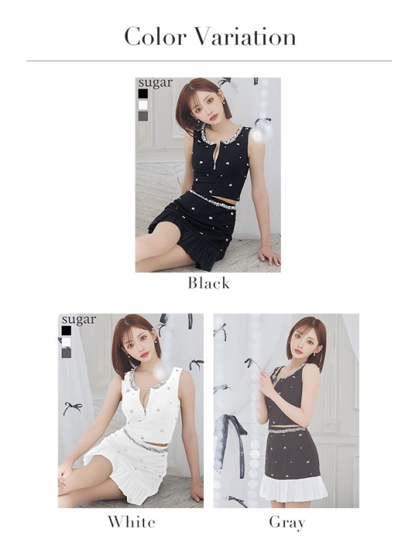 XSサイズあり【an /アン】バストジップ/ ビジュー/ ノースリーブ/ フリル/ タイト/ セットアップ/ ツーピース/ ミニドレス/ キャバドレス[OF05] [AOC3868-B-S250425]