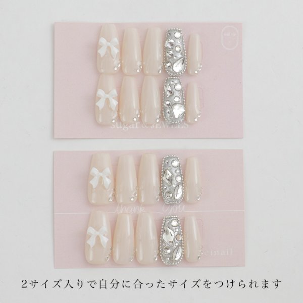 【ネイルチップ】ビジュー×リボンネイルチップ[OF02] [NL0003-IV-F]