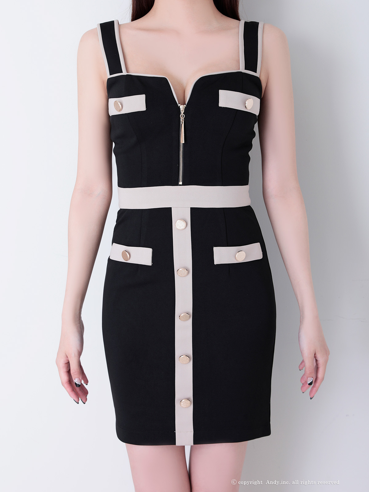 XSサイズあり【Andy GLAMOROUS/アンディグラマラス】フロントジッパー/ パイピング/ バイカラー/ ノースリーブ/ ストレッチ/ タイト/ ミニドレス/ キャバドレス[OF05] [GMS-V866-NVxW-2504]