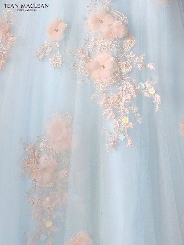 ボリューム感たっぷりのチュールスカートと全体に散りばめられた立体フラワー刺繍が可愛さ溢れるプリンセスロング♡