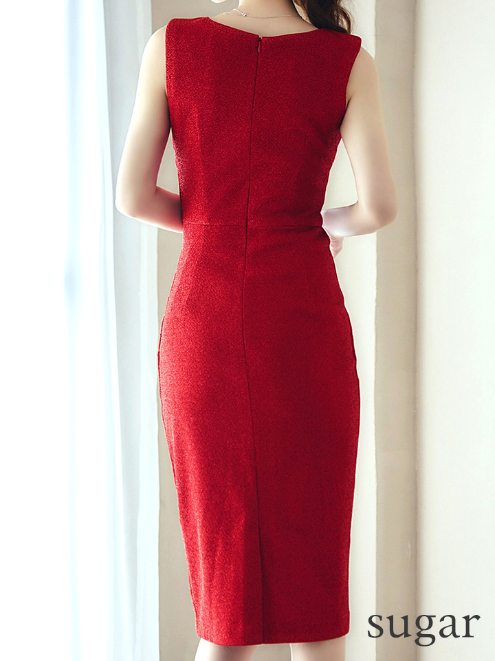 上品に煌めくラメ生地が華やかなミディアムタイトドレス♡