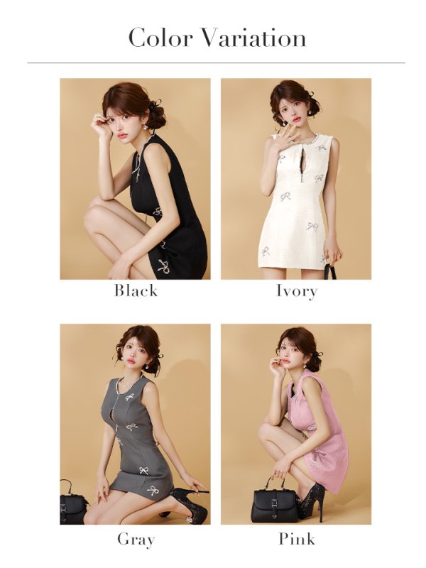 XSサイズあり【ROBE de FLEURS/ローブドフルール】リボンビジュー/ ノースリーブ/ ワンピース/ ミニドレス/ キャバドレス[OF08]【一部予約商品/12月上旬発送予定】 [FM3454-IV-S250505]