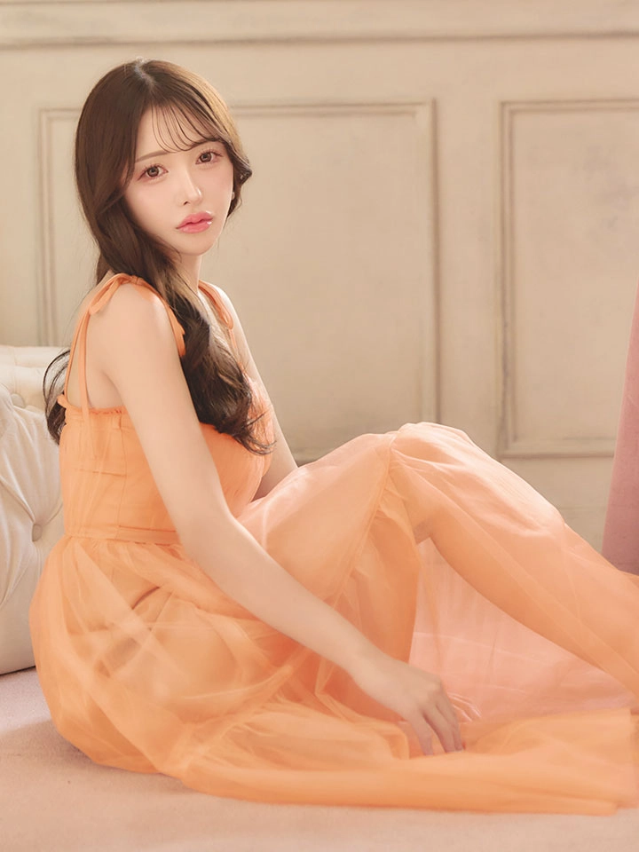 XS-Lサイズあり【DEA./ディア】ショルダーリボン/ フレア/ チュール/ ワンピース/ ロングドレス/ キャバドレス long[OF08] [DE3745-OR-S250507]
