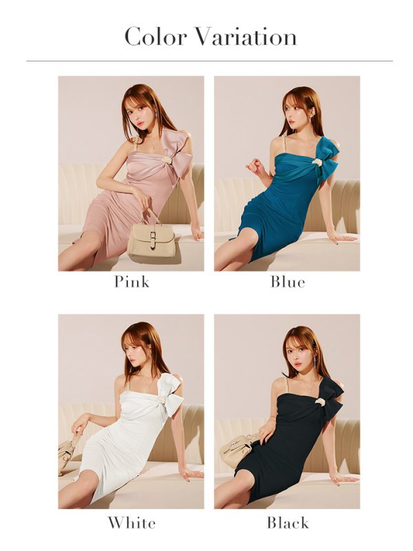 XSサイズあり【Veautt/ヴュート】【OF05】ビックリボン/ ショルダーパール/ ミディアム/ タイト/ ミディアムドレス/ キャバドレス [VT082508-P-S250513]