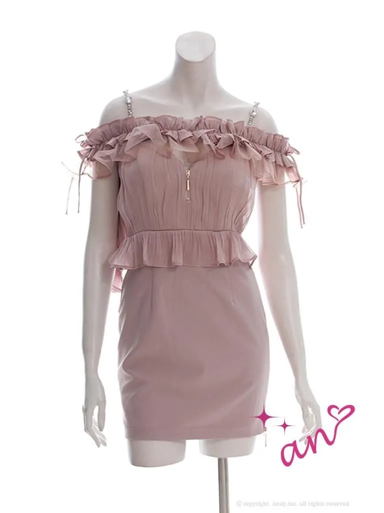 【an/アン】ビジューストラップxフリルオフショルダーがお顔周りを華やかに演出するタイトミニドレス♡