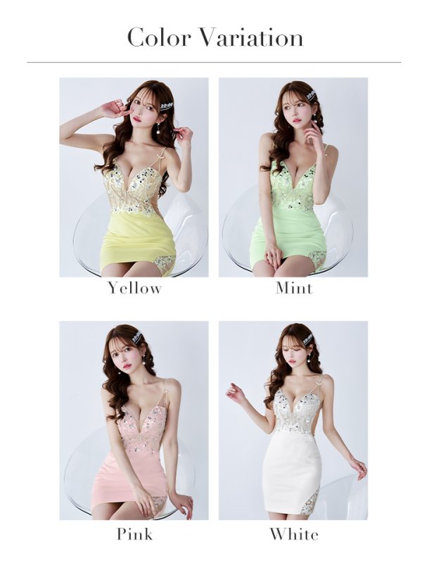 大胆なカット×繊細ビジューで視線を独占するタイトミニドレス。
