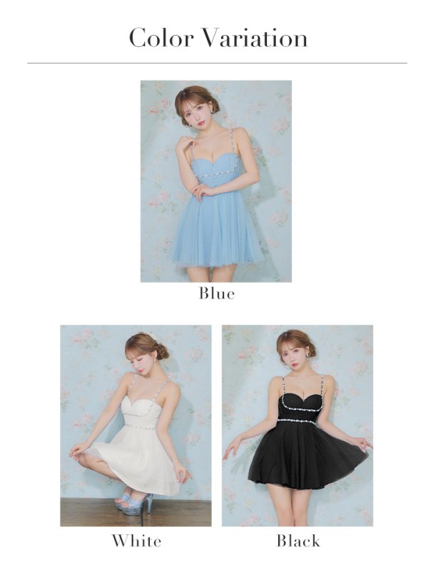 XS-Lサイズあり【ROBE de FLEURS/ローブドフルール】ドットチュール/ ビジュー/ フレア/ ミニドレス/ キャバドレス[OF08] [FM3297-BL-S250514]