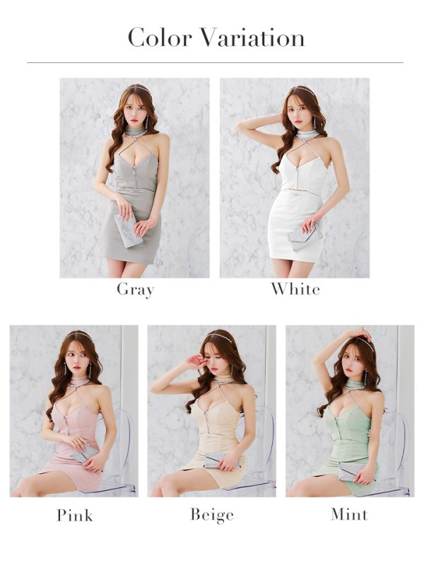 XSサイズあり【ANGEL R/エンジェルアール】チョーカーデザイン/ フロントクロス/ ビジュー/ パール/ ファスナー/ マイクロミニドレス/ キャバドレス[OF2] [AR25820-BE-S250515]
