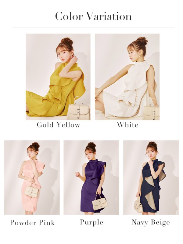 大きなフリルが優雅で上品なタイトミディアムドレス♡