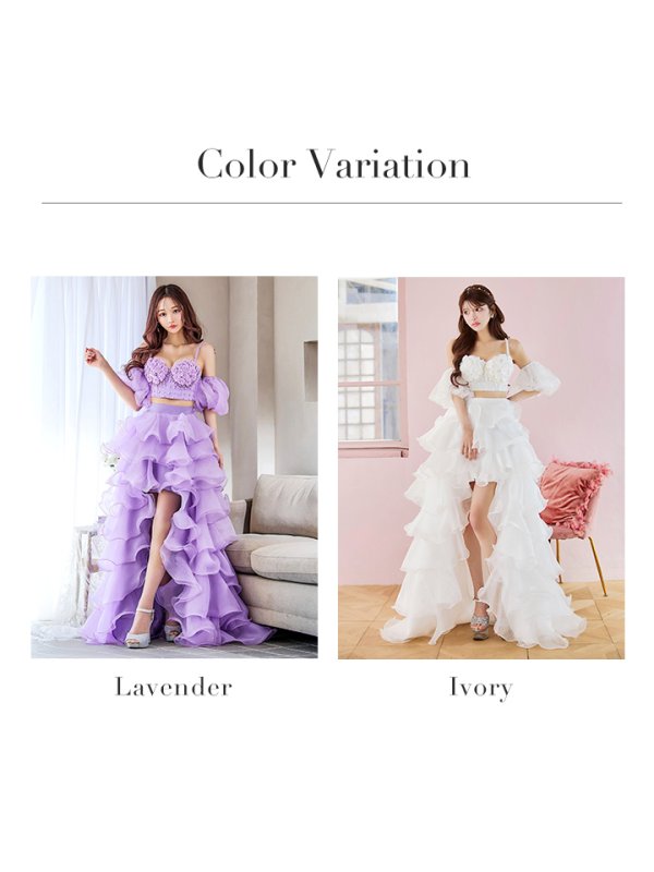 Lサイズあり【CLEO CLOE/ クレオ クロエ】パーティードレス/ ステージドレス/ イベントドレス/ 立体フラワー/ パール/ フリル/ キャミソール/ 2way/ オフショル/ 袖付き/ テールカット/ フレア/ セットアップ/ ロングドレス long[OF05] [L60194LS-LV-S2505]