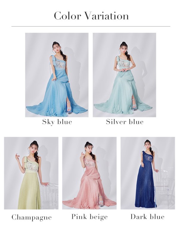 【IRMA/イルマ】ワンショルダー/ ラメニット/ フラワーレース/ ビーズ刺繍/ スリット/ ショルダーリボン/ ロングドレス/ キャバドレス long[OF2A] [51823-IR-DKBL-S250522]