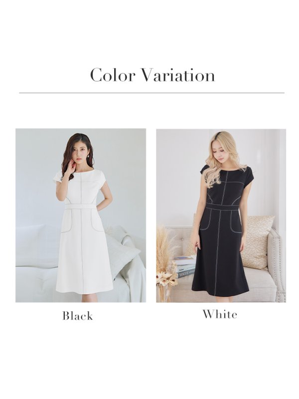 XS-Lサイズあり 【GINZA COUTURE/銀座クチュール】ワンカラー/ ステッチ/ ノースリーブ/ フレア/ Aライン/ ミモレ丈/ ワンピース/ ミディアムドレス/ キャバドレス[OF2] [LKC22086-W-S250524]