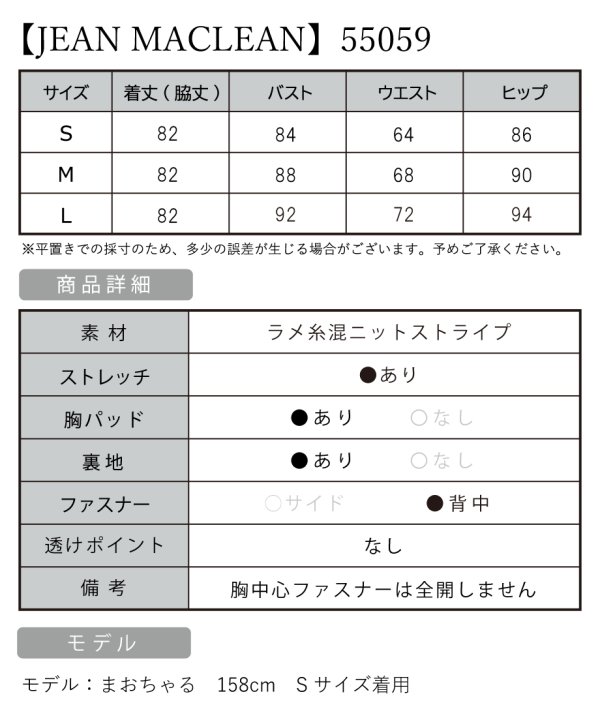 Lサイズあり【JEAN MACLEAN/ジャンマクレーン】襟付き/ ストライプ/ フロントジップ/ ノースリーブ/ タイト/ ワンピース/ ミディアムドレス/ キャバドレス[OF2A] [55059-JM-B-S250523]