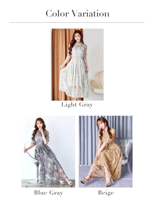 XLサイズあり【AMORA GRACE / アモーラグレース】 オケージョンドレス/ パーティードレス/ お呼ばれドレス/ 総レース/ ハイネック/ 半袖/ 袖あり/ フレア/ Aライン/ ミモレ丈/ ワンピース/ キャバドレス[OF05] [G60205HL-BE-S2506]