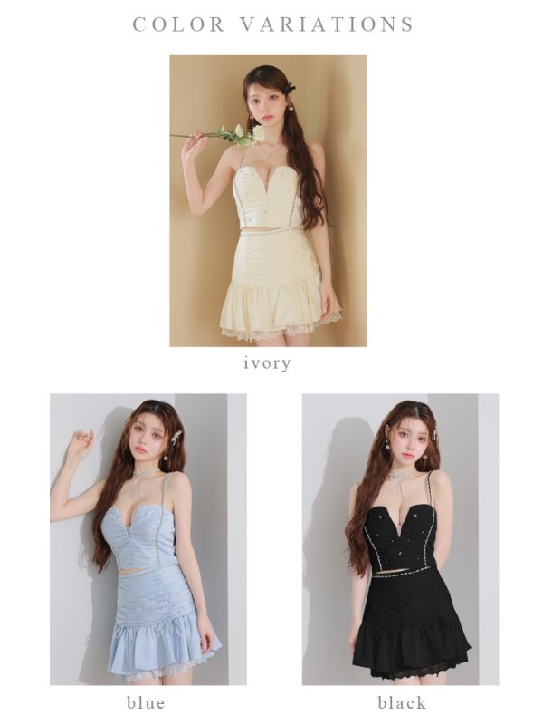 【予約商品/2月中旬発送予定】XSサイズあり【ROBE de FLEURS/ローブドフルール】サテン/ ビジュー/ レース/ フレア/ キャミソール/ ツーピース/ セットアップ/ ミニドレス/ キャバドレス[OF08] [FM3598-BL-2506]