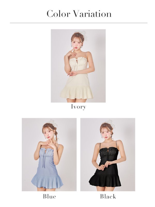 胸元のギャザーとカットデザインで甘く色っぽいミニドレス。