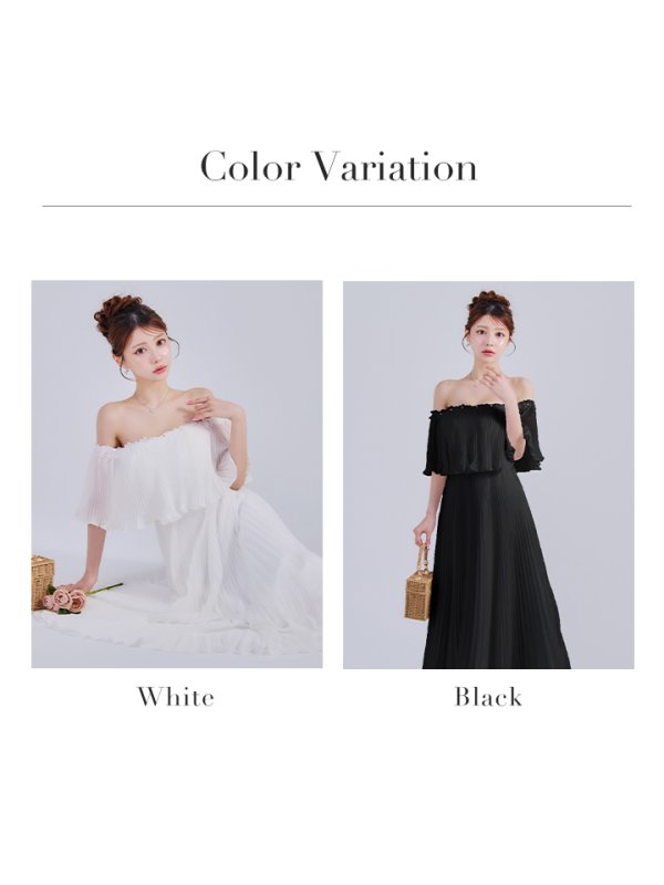 Lサイズあり【JEAN MACLEAN/ジャンマクレーン】コサージュ付き/ ホルターネック/ オフショル/ プリーツ/ シフォン/ マキシ丈/ミディアムドレス/ キャバドレス[OF2A]【一部予約商品/1月下旬発送予定】 [51867-JM-W-S250605]