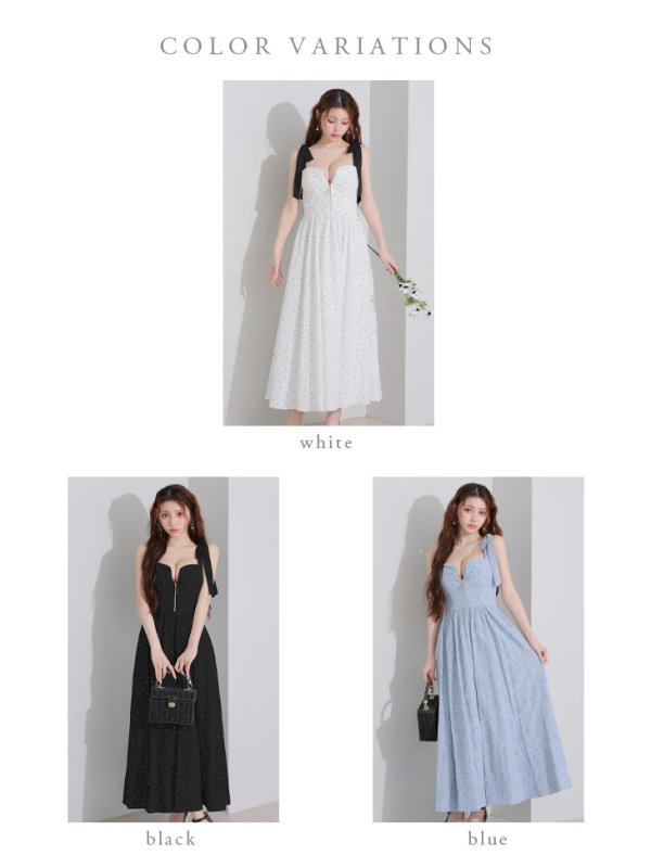 Lサイズあり【DEA./ディア】ショルダーリボン/ ドット/ フレア/ ロング/ ワンピース/ ミモレ丈/ マキシ丈/ ミディアムドレス/ キャバドレス long[OF08]【一部予約商品/1月下旬発送予定】 [DE4200-W-2506]