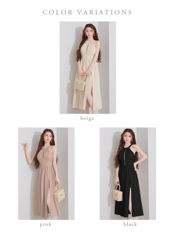 Lサイズあり【DEA./ディア】ホルターリボン/ バストジップ/ フレア/ ロング/ ワンピース/ ミモレ丈/ マキシ丈/ ミディアムドレス/ キャバドレス long[OF08] [DE3935-B-2506]