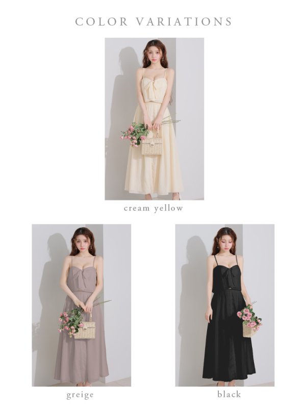 Lサイズあり【DEA./ディア】バストリボン/ スリット/ フレア/ セットアップ/ ロング/ ワンピース/ ミモレ丈/ マキシ丈/ ミディアムドレス/ キャバドレス long[OF08] [DE3929-Greige-2506]
