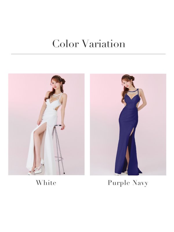 ウエストから素肌を覗かせ、ロングスリットで美脚をアピール♡