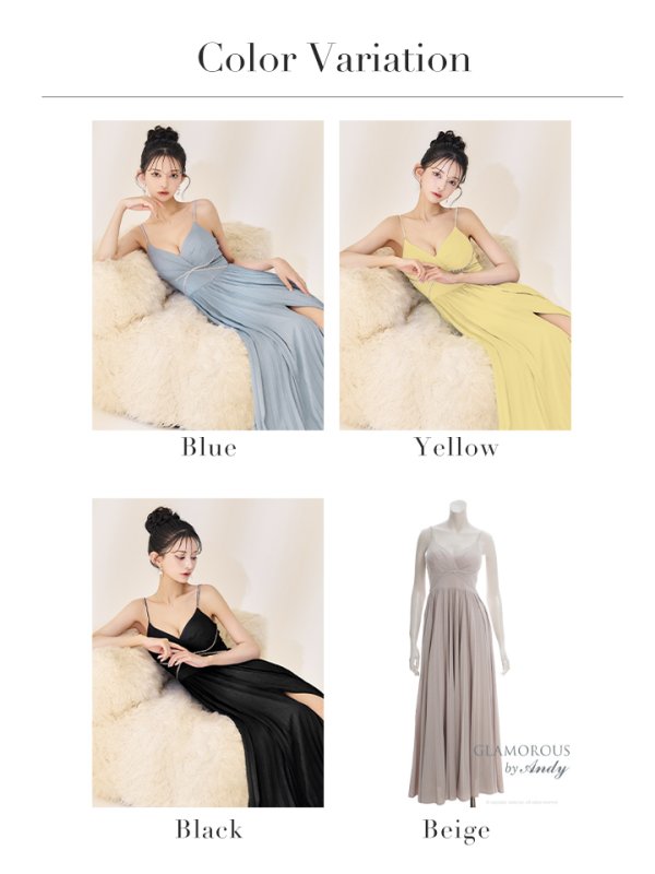 【Andy GLAMOROUS/アンディグラマラス】ビジュー/ ラメ/ プリーツ/ キャミソール/ スリット/ ストレッチ/ フレア/ ロングドレス/ キャバドレス long[OF05] [GMS-V870-Y-S250607]