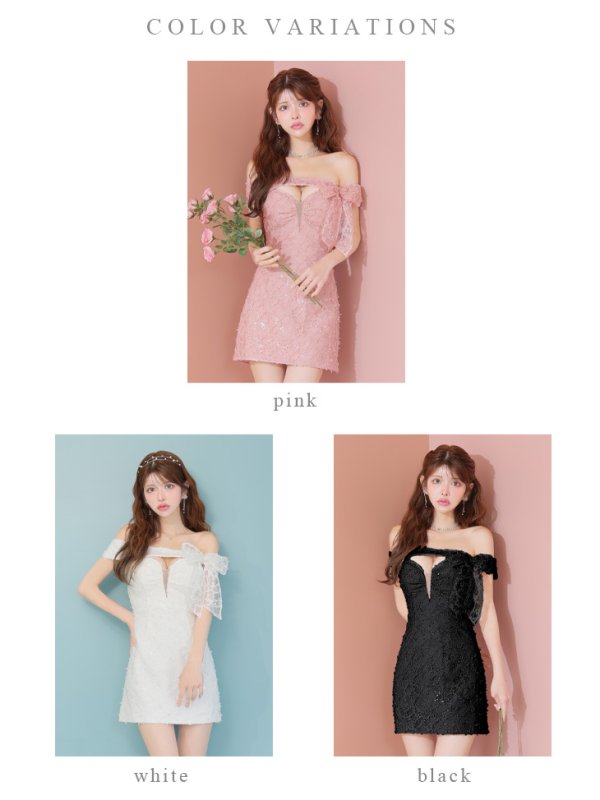 sugarコラボカラー・XSサイズあり【ROBE de FLEURS/ローブドフルール】オフショル/ リボン/ レース/ ミニドレス/ キャバドレス[OF08] [FM3462-P-2506]