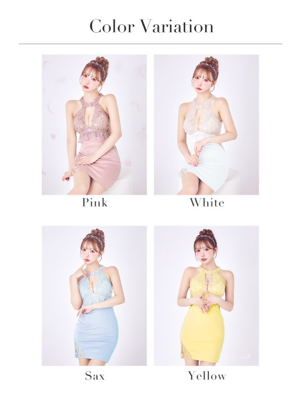 XSサイズあり【ANGEL R/エンジェルアール】ホルターネック/ バストレース/ フラワー/ フリル/ ビジュー/ タイト/ ミニドレス/ キャバドレス[OF2] [AR25225-W-S250611]