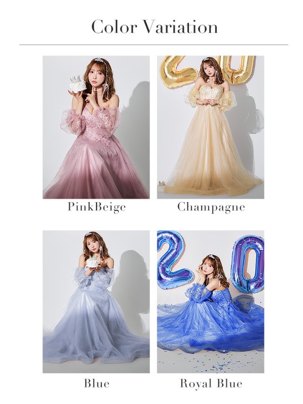 【JEAN MACLEAN/ジャンマクレーン】2way/ 七分袖/ シアー/ レース/ チュール/ ラメ/ スパンコール/ オフショル/ ベア/ パフスリーブ/ フレア/ プリンセス/ ロングドレス/ キャバドレス long[OF2A] [51847-JM-CHP-S250613]